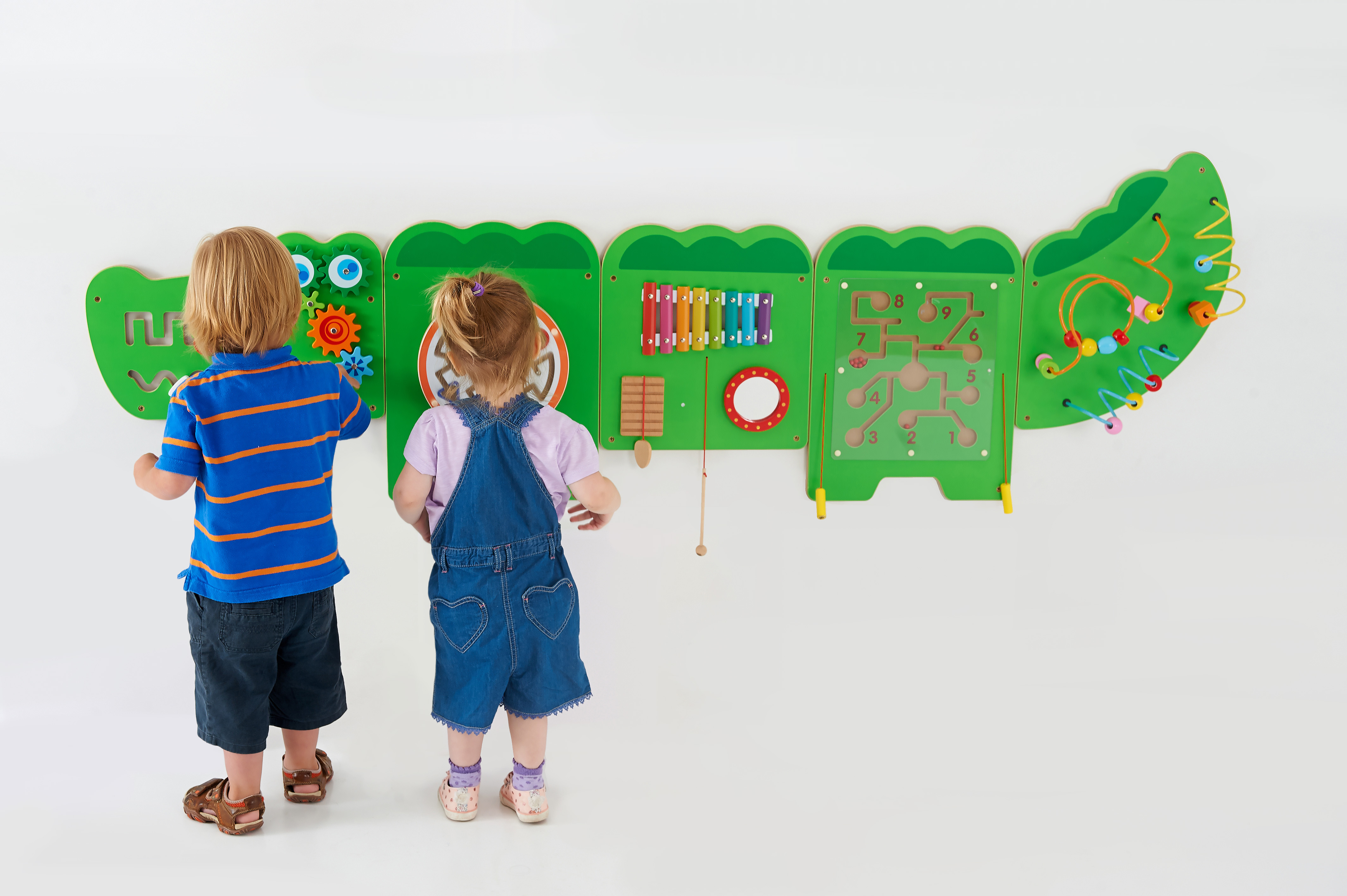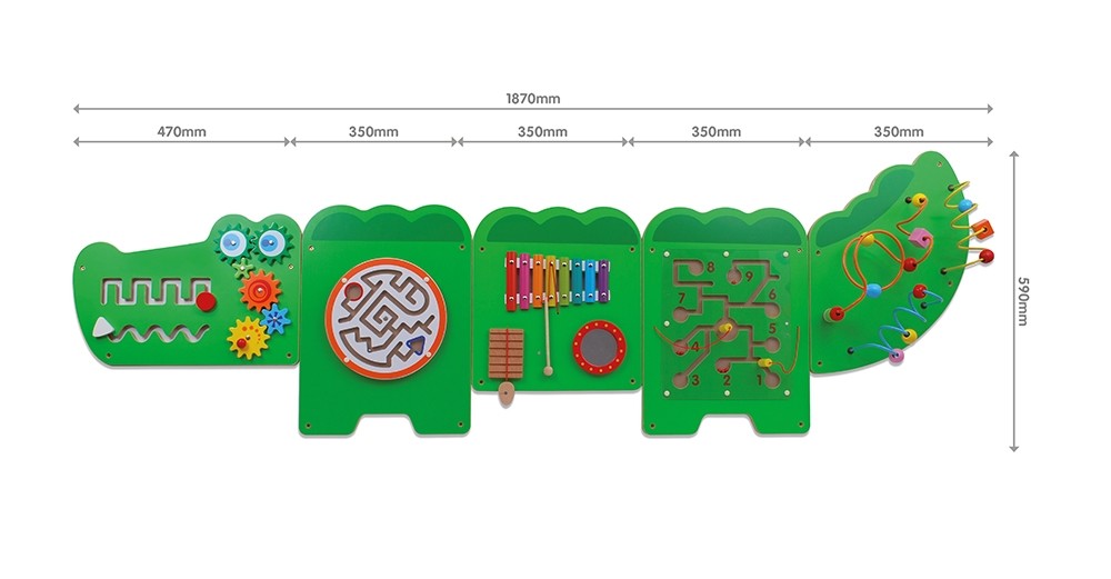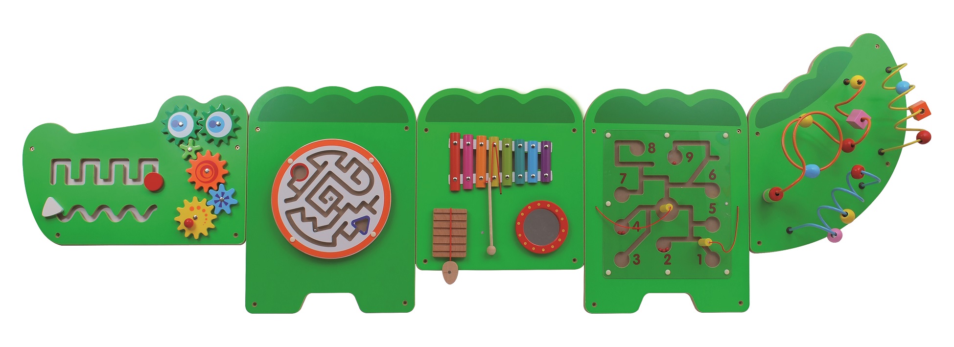 Made in five pieces, each with a different set of activities to encourage hand-eye coordination and fine motor skills.