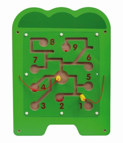 Includes: percussive instruments, a mirror, magnetic pen and ball followers, various mazes and threading activities, rotational pieces and a slotted line followers and interlocking cogs.