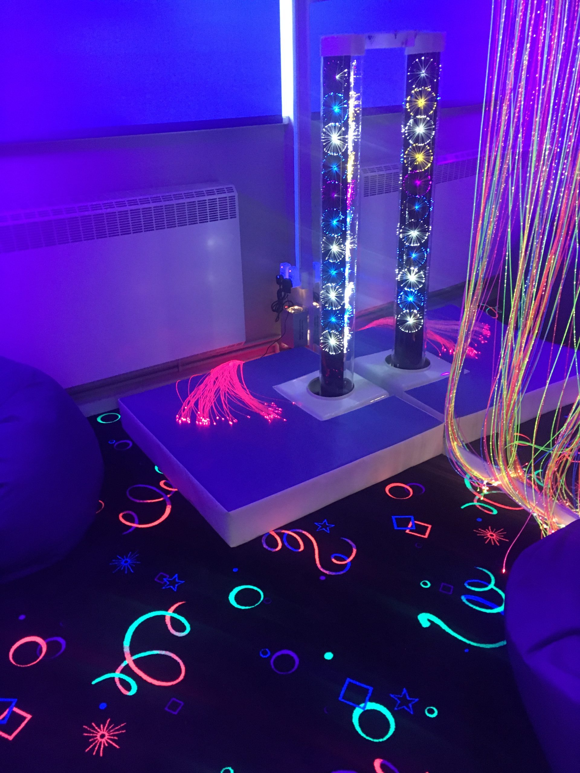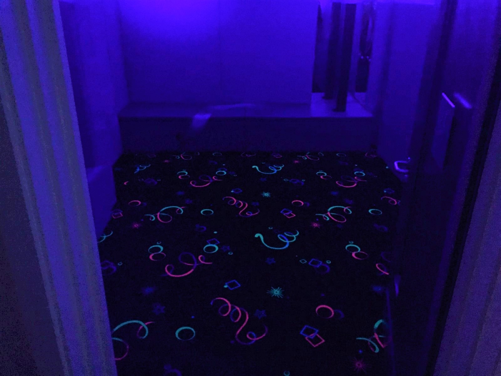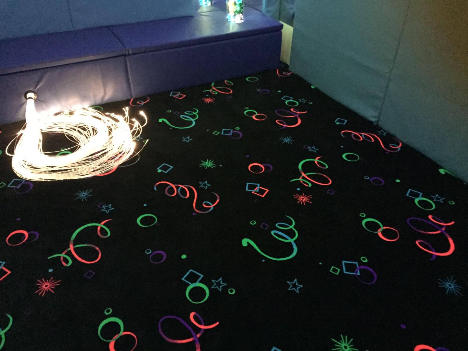 Custom UV carpet to cover any sized room! pattern may alter to that shown, Has a calming effect when under UV light, great addition to any sensory room or dark room.